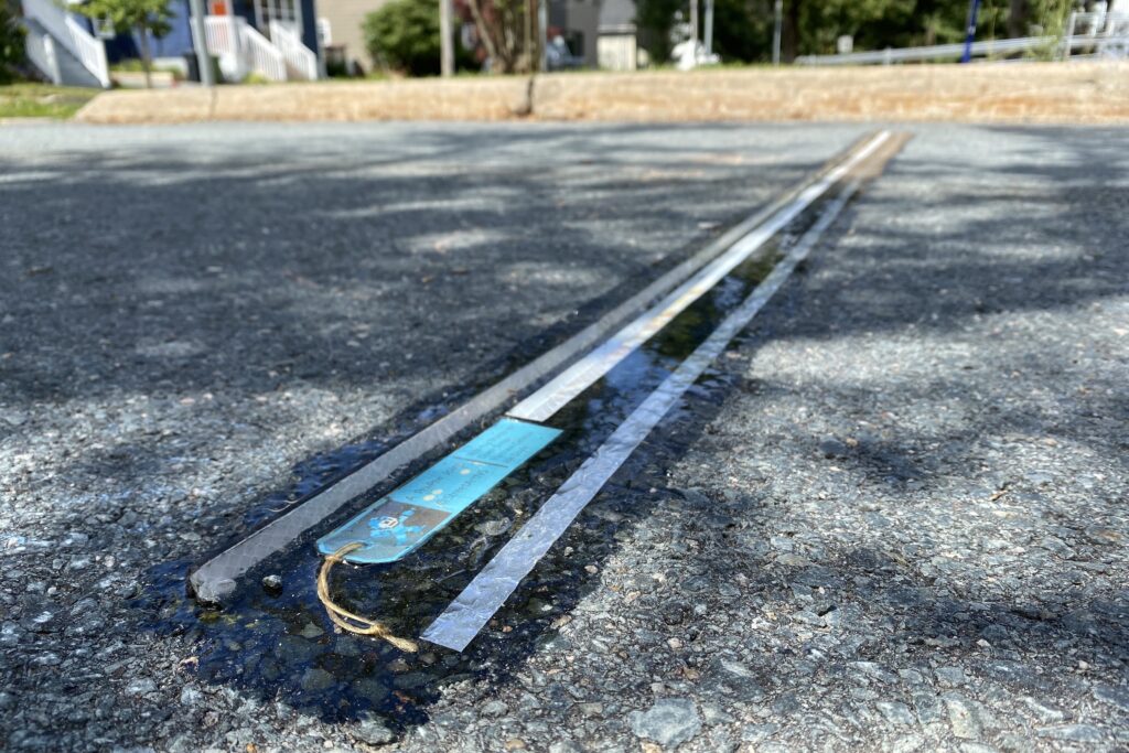 道格·卡尔顿-已知推特去年,他花了很多时间研究一种新型的减速带。上周,他在达特茅斯市芬德利社区中心的停车场安装了一个减速带。