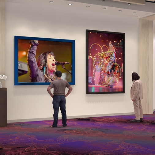 报告中的一幅渲染图显示,人们在画廊里挂着普通艺术品,土著人民穿着王室服饰表演的照片,以及巴菲·圣玛丽的照片,显然是从那里撕下来的thecanadianencyclopedia.ca通过Flickr。