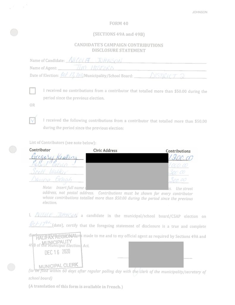 2020年10月是哈利法克斯的第一次大选竞选财务规章制度,决定候选人可以筹集多少资金以及从谁那里筹集。所有候选人都必须在12月16日当天之前提交选举资金申告书。周三下午,市政府在网上发布了这些声明。