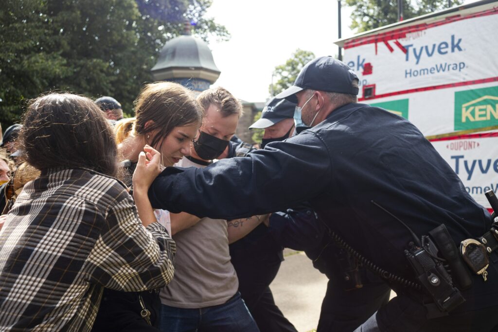 警方制定了24次逮捕和带电抗议者,包括障碍,袭击警察和抵抗逮捕。Kinsella说,他们都在晚上释放了在晚上的监护权中出现的承诺。