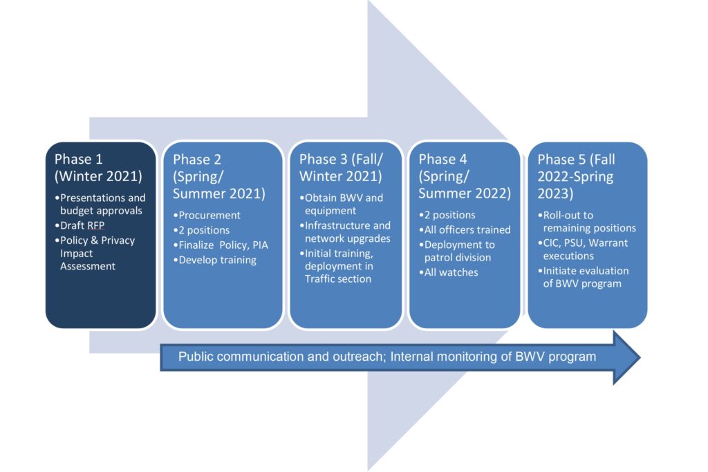 购买后,警方将“建立一个内部监督程序,以便项目团队在推广和评估过程中提供反馈”,然后开始推广交通部门的警官,从培训他们如何使用这些工具开始。