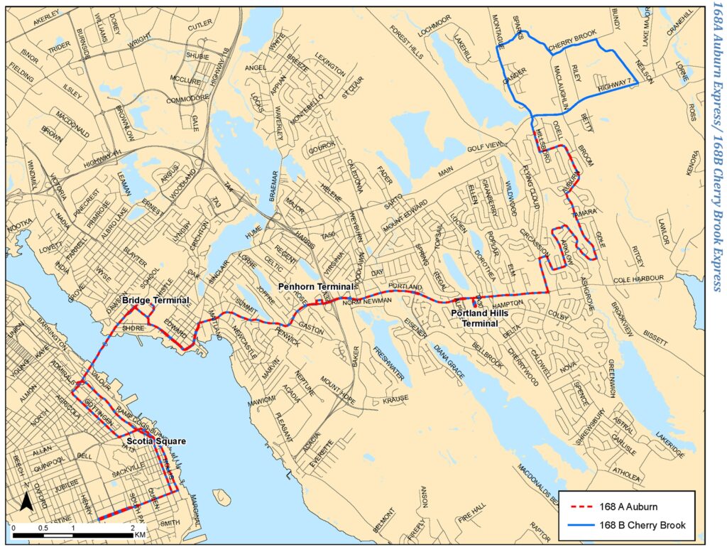 它停在波特兰山顶终端,并由168B樱桃布鲁克快艇取代,这将在高峰时段到市中心的哈利法克斯来源。
