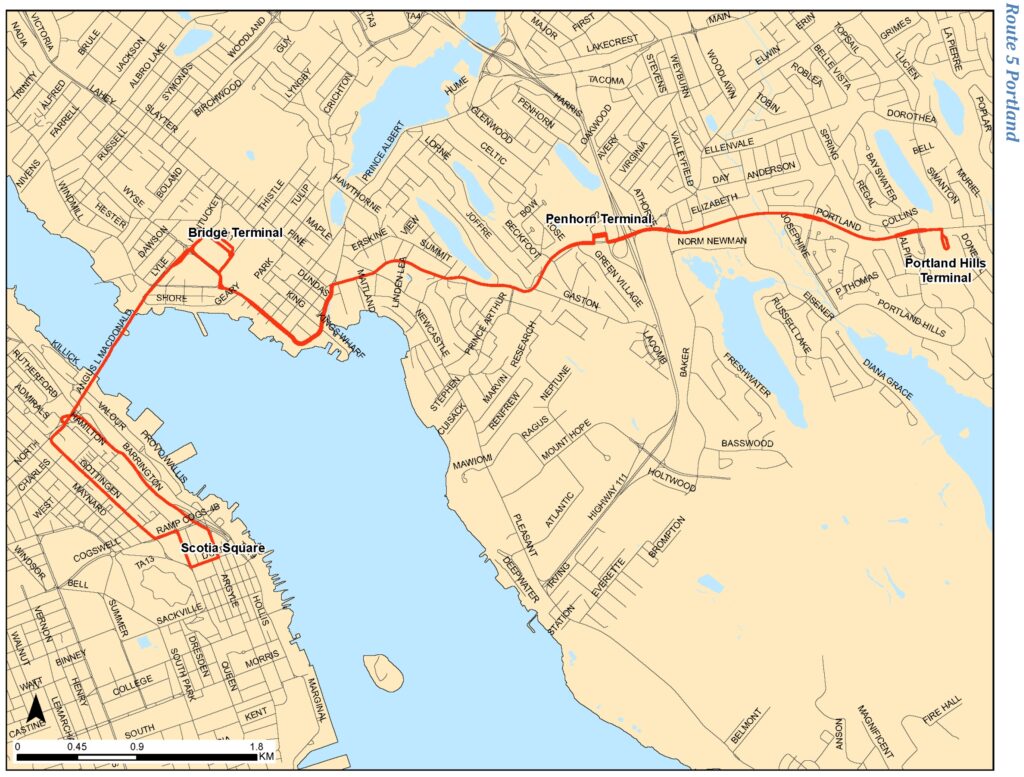 新的5号公路将从波特兰山终端运行,通过达特茅斯市中心和桥梁到斯科舍广场。