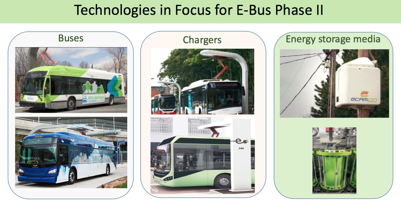 电动巴士是一项正在发展的技术,CUTRIC的试点项目正试图将这项技术的发展引向对交通机构有意义的方向。第一阶段试验(其中温哥华包括标准40英尺公交车的标准化充电技术,所有公交车的充电功率都为450千瓦。第二阶段将扩大到包括60英尺长的公共汽车,并有可能使公共汽车充电高达600千瓦,这对哈利法克斯来说可能是必要的,也可能不是。