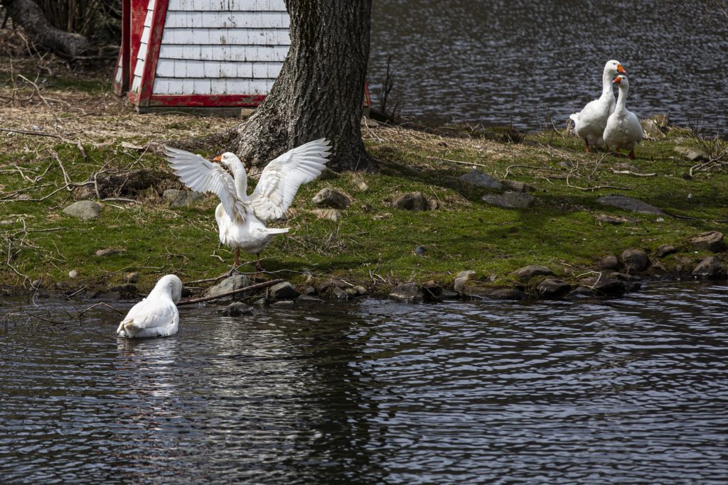 2020年4月20日,这些鹅回到了沙利文池塘。- - - - - -赞恩伍德福德