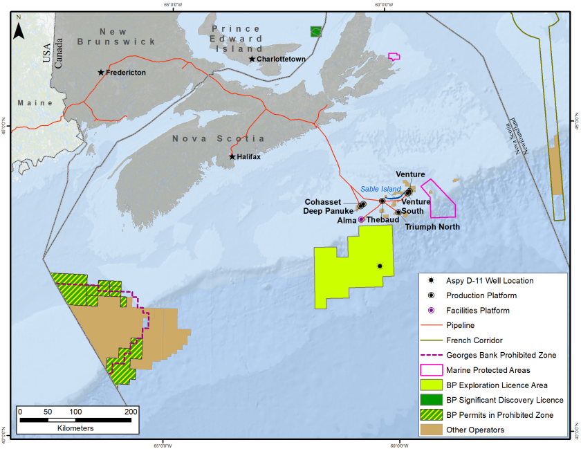 BP勘探许可证区域位于Scotian Slope,距离Halifax 330公里。来自Scotian盆地勘探项目:https://www.bp.com/en_ca/canada/who-we-are/offshore/bp-in-nova-scotia.html