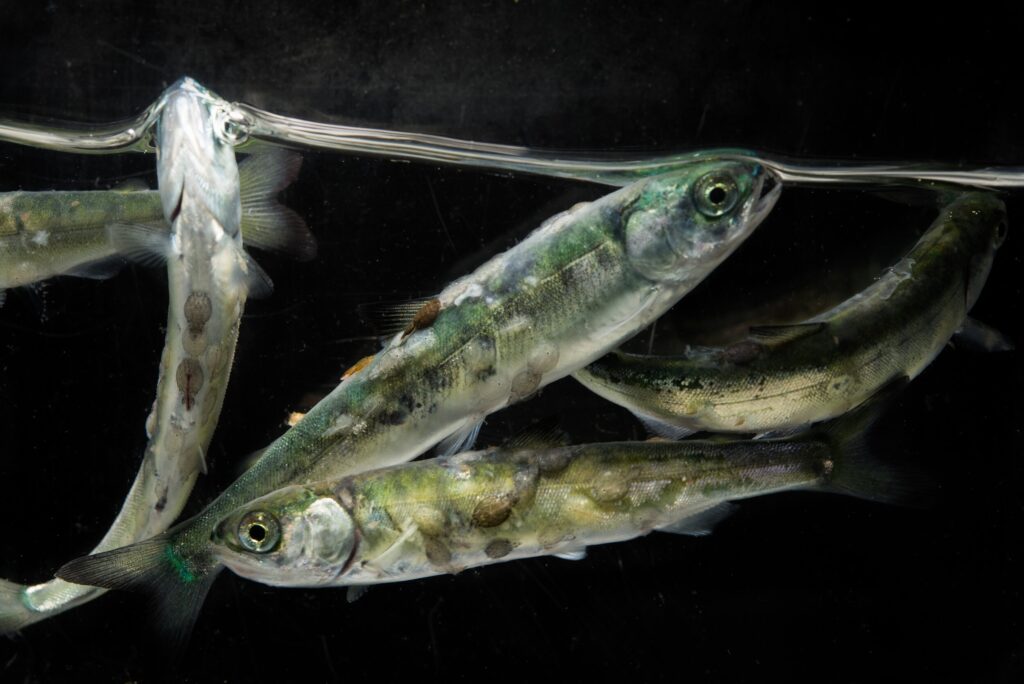 幼鲑鱼身上的海虱。照片:Tavish坎贝尔