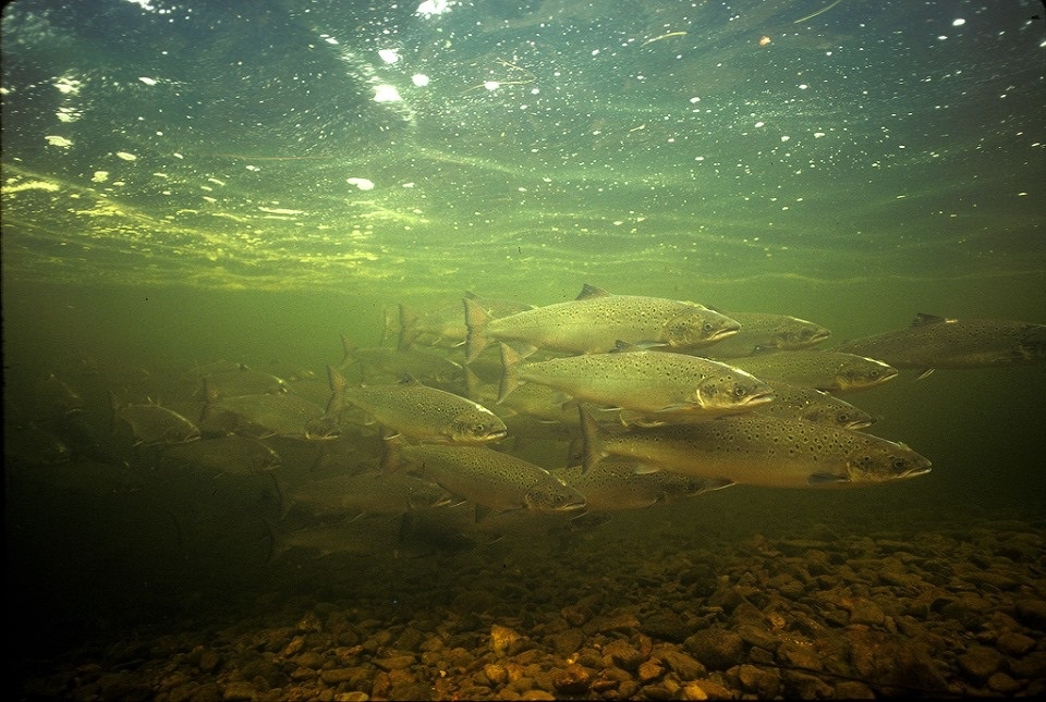 狂放的大西洋三文鱼在圣玛丽的河里。照片:Gilbert Van Ryckevorsel