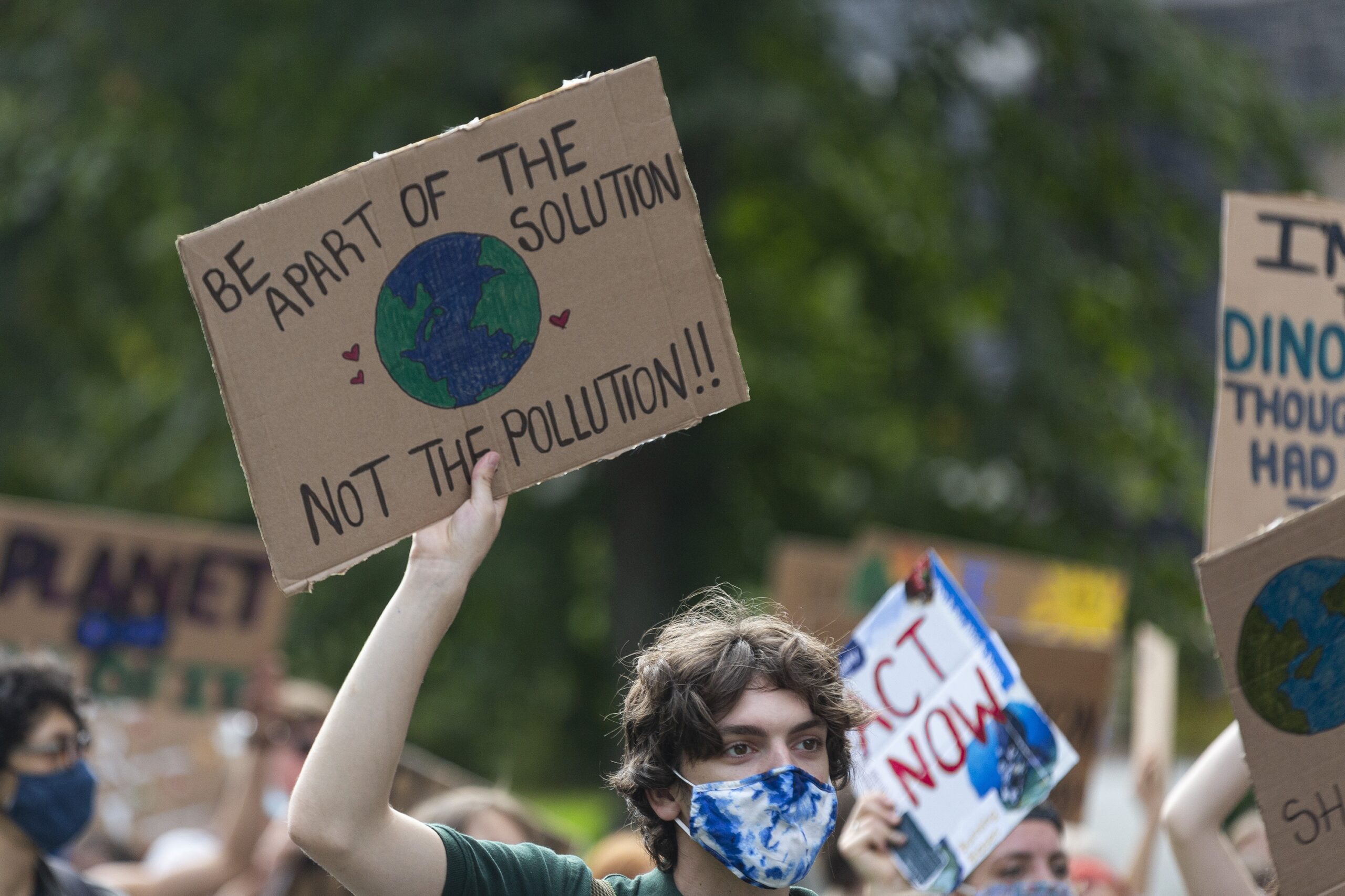 A protester holds a sign reading, “Be a part of the solution not the pollution!” during the School Strike for Climate Change in Halifax on Sept. 24, 2021. — Photo: Zane Woodford