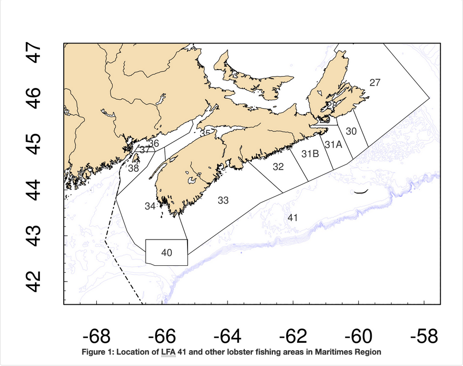 DFO发言人指示我到了综合渔业管理计划查阅有关离岸龙虾渔业的许可证和管理的资料。报告没有解释Clearwater是如何控制LFA 41的,但提供了离岸龙虾渔业的简要历史。