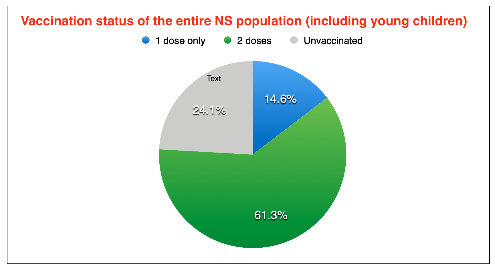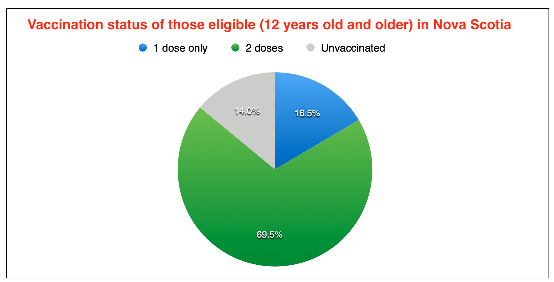 在符合接种疫苗资格的人群(12岁及以上)中,86.0%的人至少接种了一剂疫苗,69.5%的人接种了两剂疫苗。这是我的粗略估计,用的是我对人口年龄群的最佳估计。