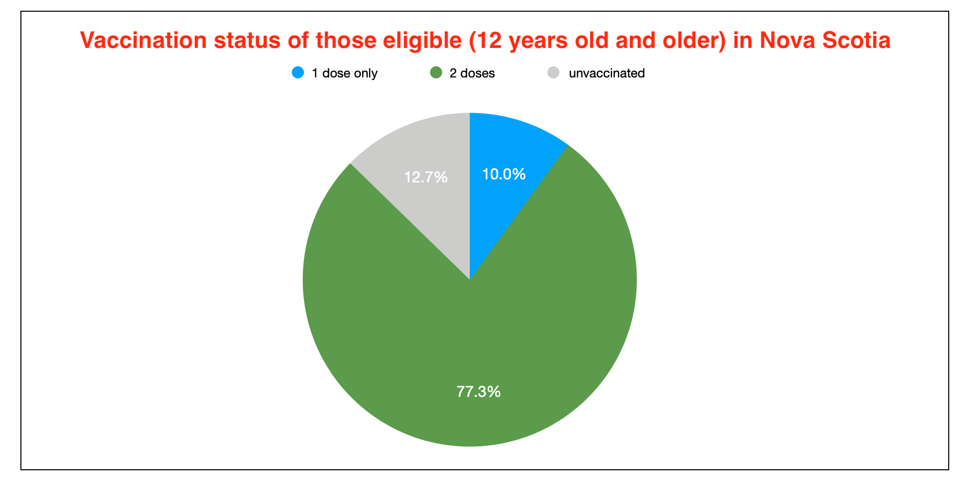 其中有资格接种疫苗的人(12岁及以上),87.3%已收到至少一种剂量,而77.3%已接受两剂。这是我对我的最佳人口年龄群体的最佳习惯来估计。
