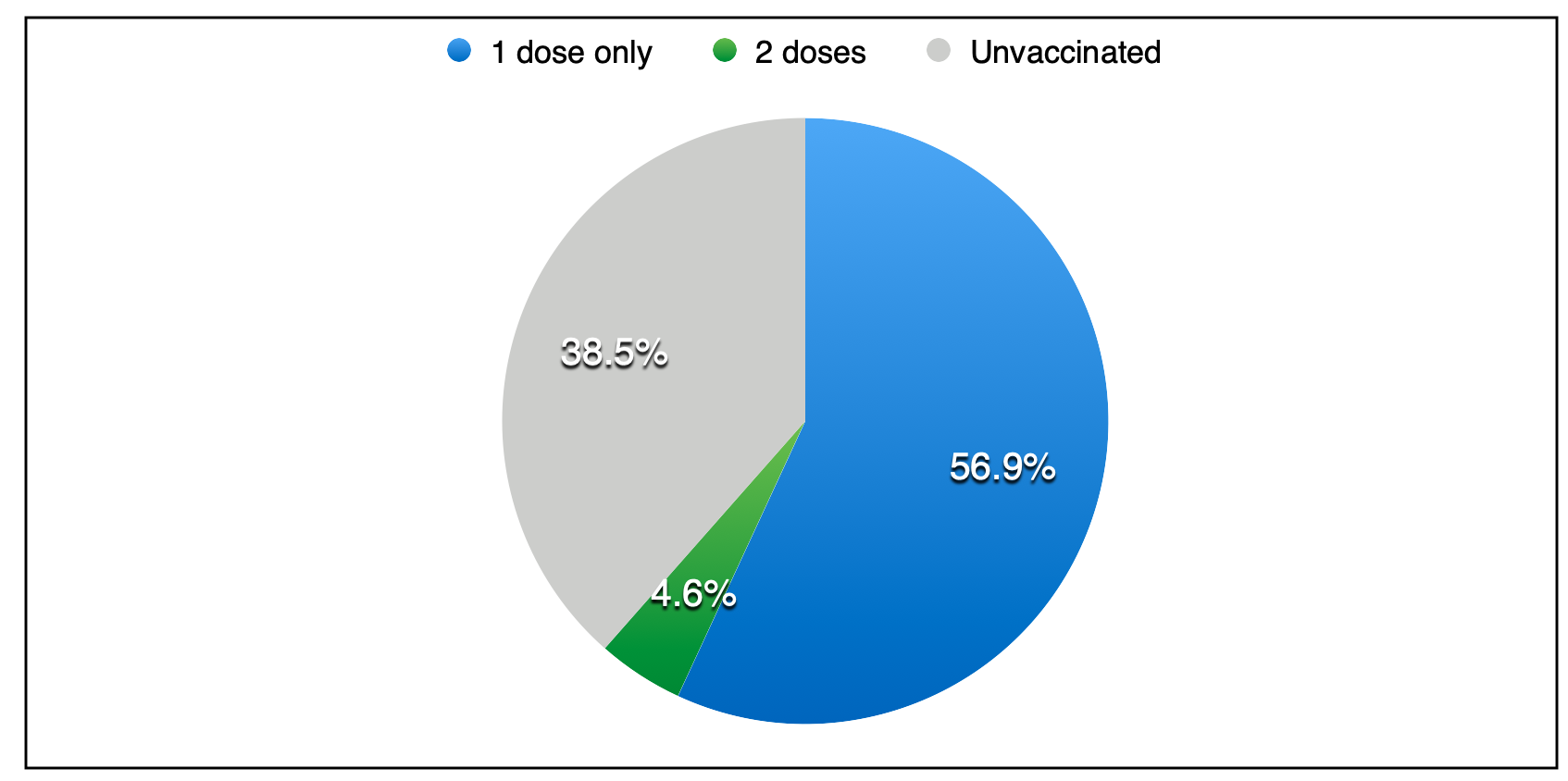 昨天,仅施用4,807剂疫苗。截至昨天的一天结束,施用了642,718次疫苗,包括44,876次剂量;61.5%的整个人口至少收到了一剂疫苗,从昨天的61.1%没有改善