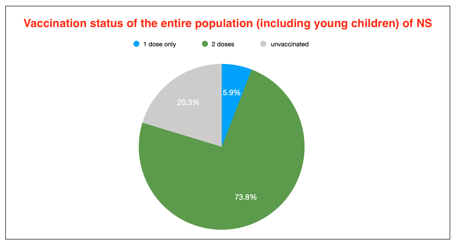 然而,驻扎在新斯科舍省的约8 000名军事人员通过军队的疫苗接种计划接种了疫苗,不包括在上述百分比中;如果包括他们,那么双重剂量的比例增加到整个人口的74.6%。