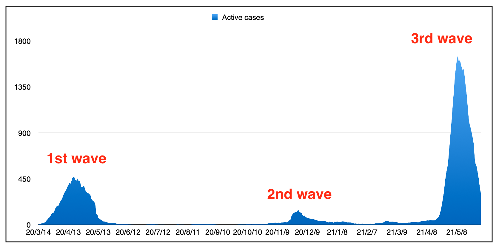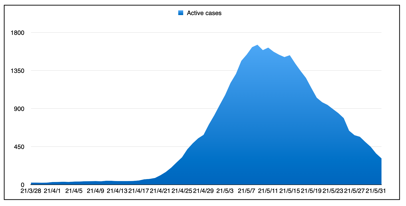 这是2020年3月大流行开始以来的活跃病例量: