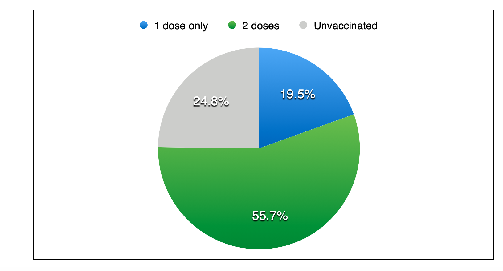 对于上述统计数据,“完全接种疫苗”是指接受第二剂,两周过去了。“部分接种疫苗”是指接受一次剂量,并通过两周。“未接种疫苗”意味着那些不在其他类别中的人。