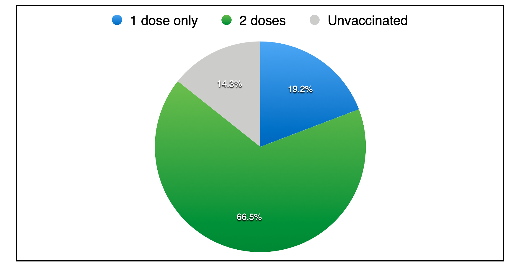其中有资格接种疫苗的人(12岁及以上),85.7%已收到至少一种剂量,而66.5%已接受两剂。