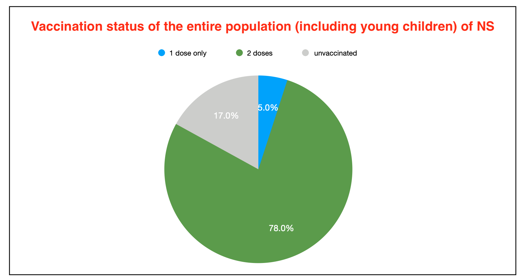 At the end of the day yesterday, 83.1% of the entire population (including young children) have received at least one dose of vaccine, 78.1% have received at least two doses.