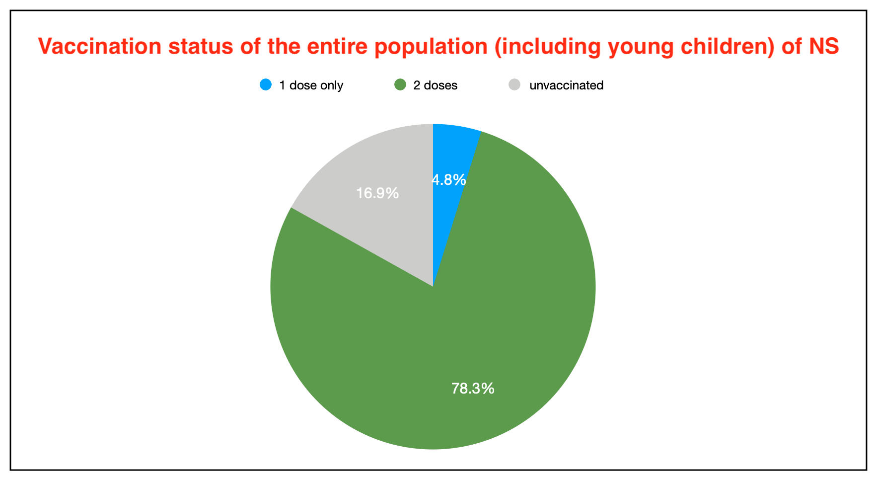 截至昨日,全国83.1%的人(包括幼儿)至少接种了一剂疫苗,78.3%的人至少接种了两剂疫苗。
