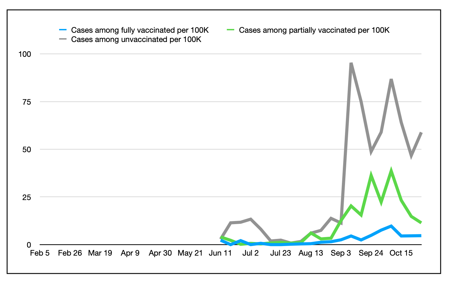10月21日- 10月27人死于COVID-19;两人都未接种疫苗。