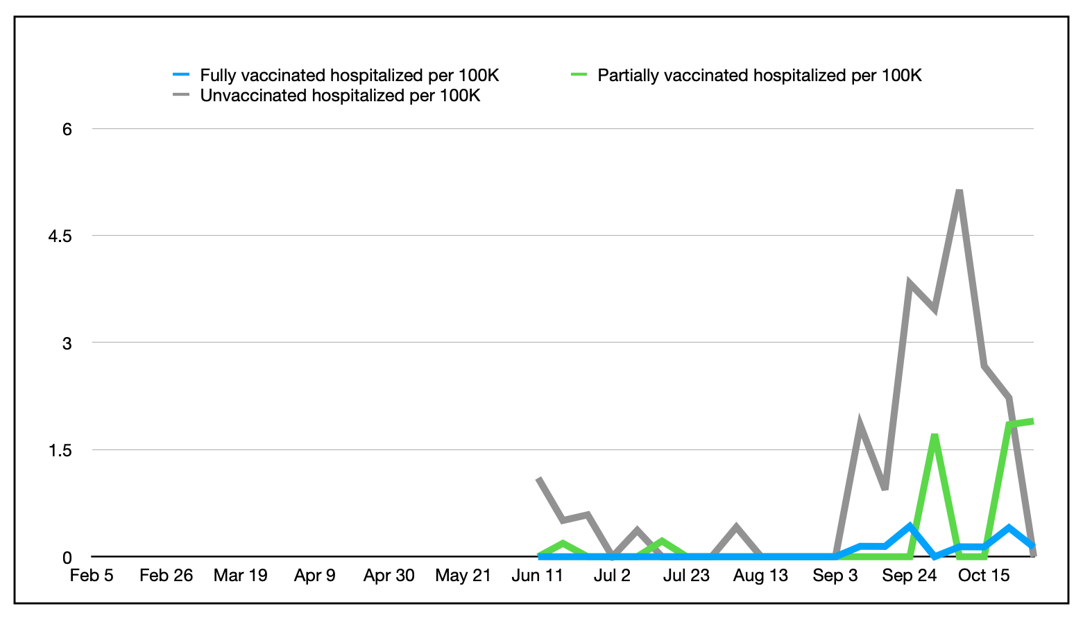 •1人部分接种疫苗(比例为每100K部分接种1.9)