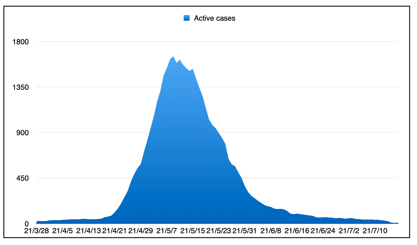 现在省内有八个已知的活跃案例;两个人在疾病的医院里,其中一个人在ICU。