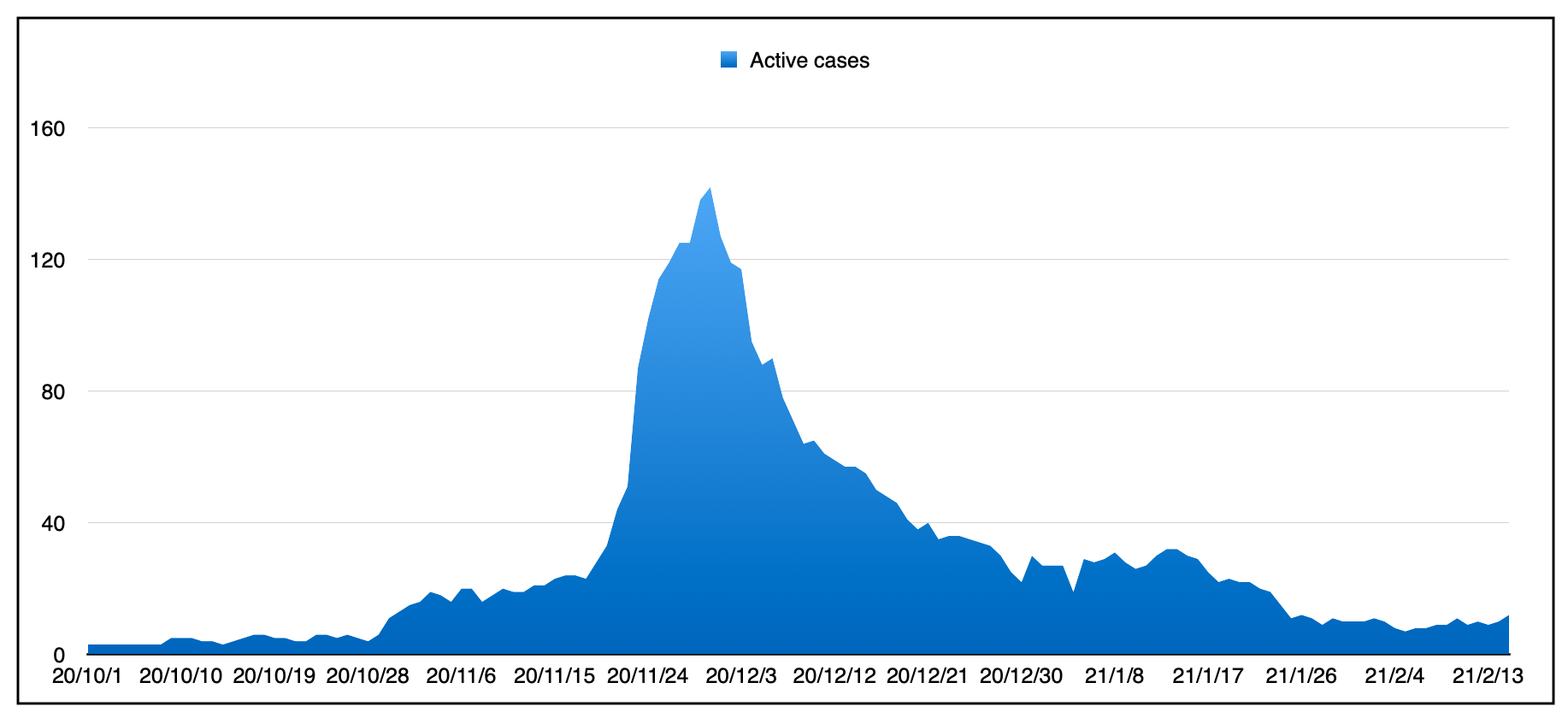 该省目前已知有12例活跃病例。一人仍在医院接受治疗,目前在重症监护室。