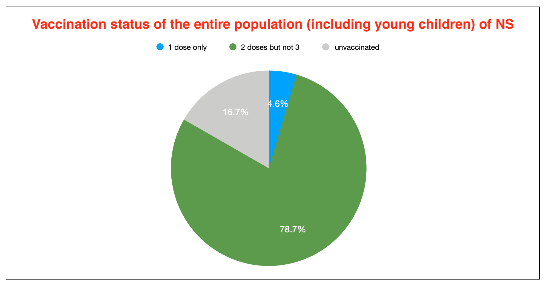 截至昨日一天结束时,83.3%的人口(包括幼儿)接受了至少一剂疫苗,78.7%接受了至少两剂疫苗。