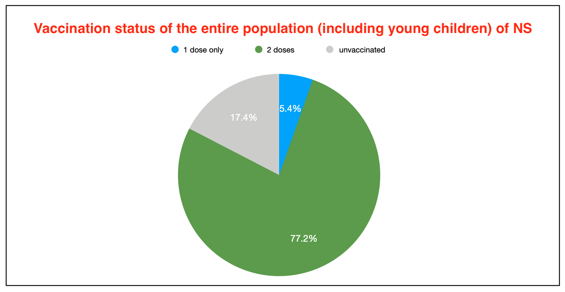 By end of day yesterday, 82.5% of the entire population (including young children) have received at least one dose of vaccine, and 77.2% have received two doses.