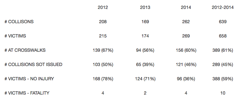 2012年至2014年间,哈利法克斯有658名行人被车辆撞死,其中10人死亡。这些是警方昨天发布的统计数据.这是事件的列表;SOT是一个摘要冒犯票,即,可以发给驾驶员或行人的票证: