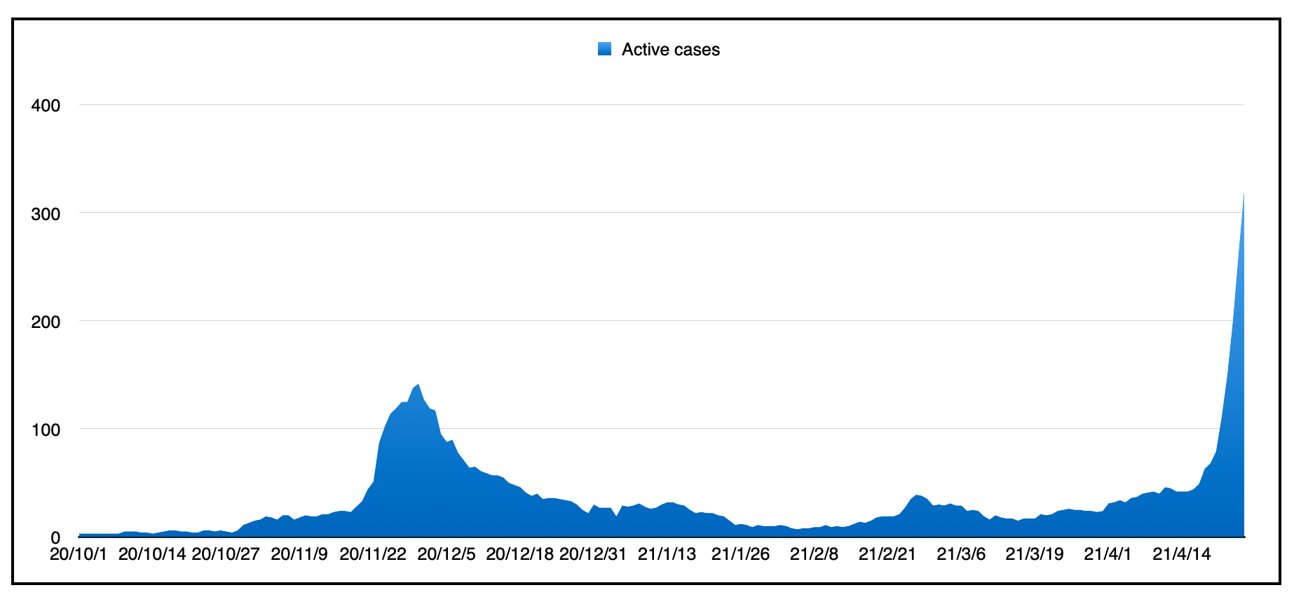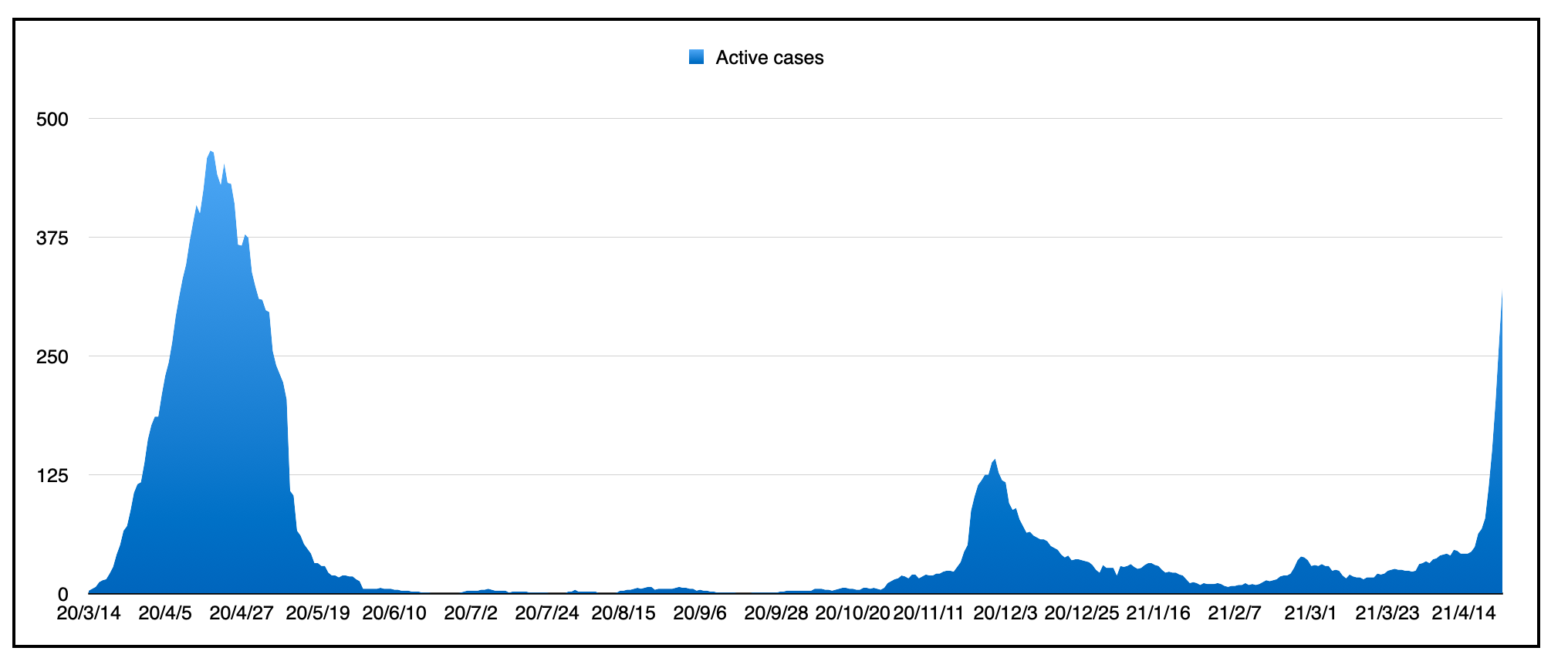 这是2020年3月大流行开始以来的活跃病例量: