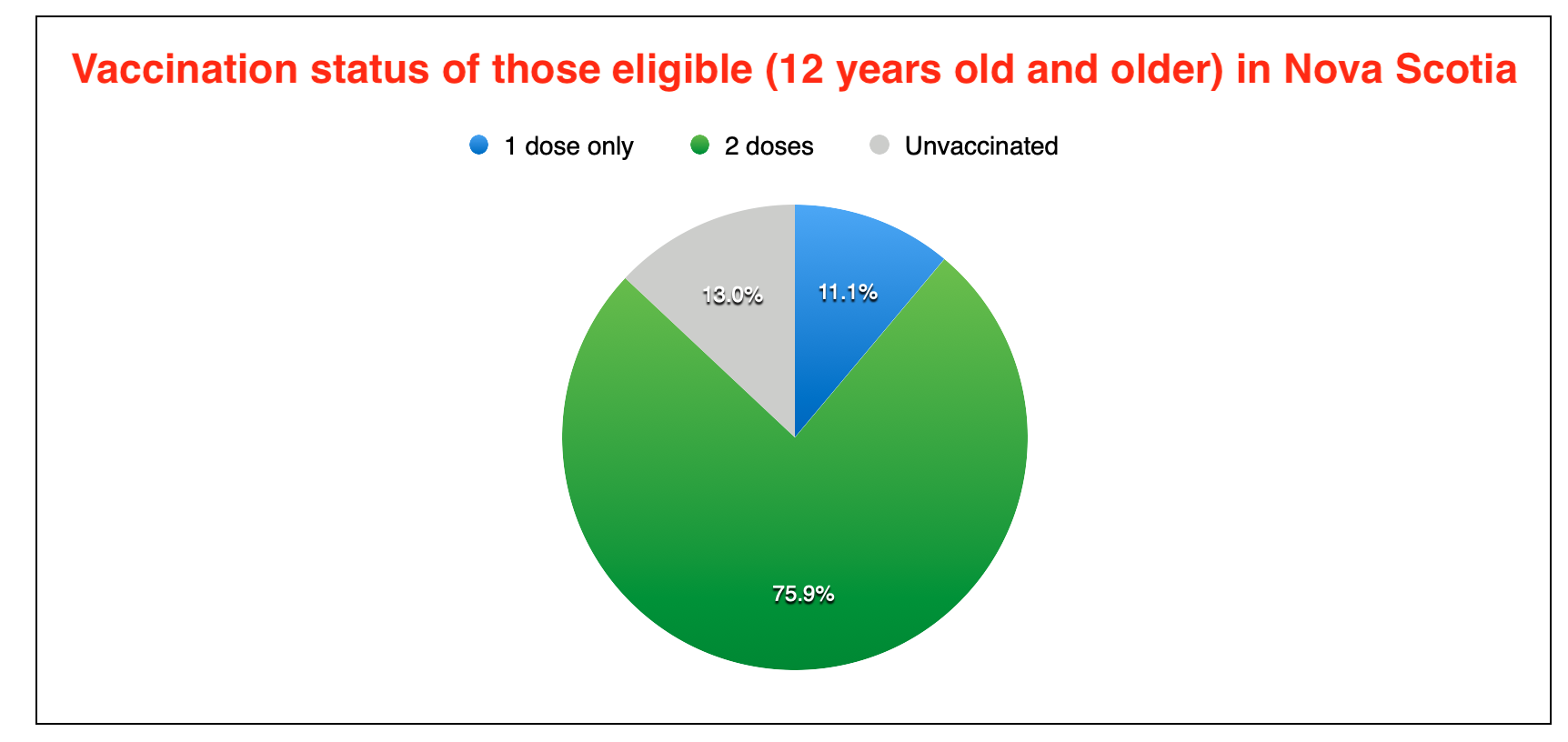 在符合接种条件的人群(12岁及以上)中,87.0%的人至少接种过一次疫苗,75.9%的人接种过两次疫苗。这是我的粗略估计,用的是我对人口年龄队列的最佳估计。