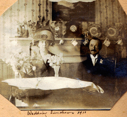 [Archibald's Great Aunt]路易斯从Parrsboro娶了一个哈特菲尔德,仪式在墨尔本和玛丽的布里奇敦房子举行。如果你能设法不公开鲁西亚的非凡帽子,请注意她抱着一束鲜花,现场有五个花瓶。在“快乐”夫妇面前的那个似乎是甜蜜的豌豆!