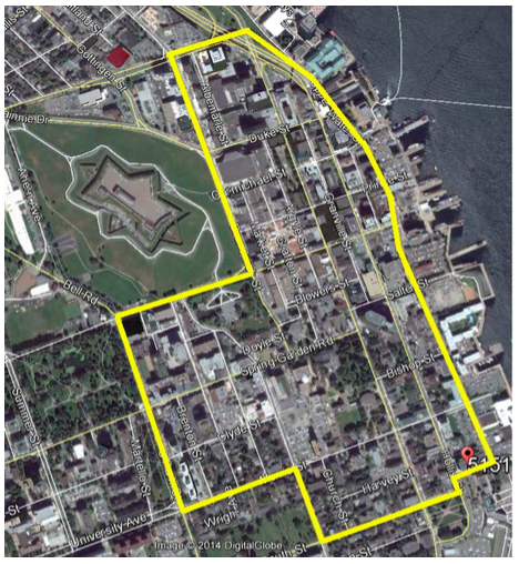 新的办公空间将位于市中心核心,由上面的黄线定义,因为虽然需要通过新斯科舍省通道获得服务的市民必须步行到遥远的郊区,但为高管们提供一个引人注目的中心位置很重要。当然,有很多中低级别的SNS员工乘坐公交车或步行上班,集中办公地点对他们有帮助,但为什么对需要换驾照的人没有同样的考虑呢?对他们来说,是去达特茅斯的拜尔斯湖或贝克路。