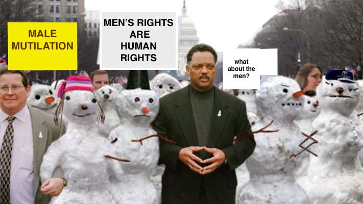 当地的男人的维权人士奇怪的是,在公共空间强制销毁男性象征的问题上保持沉默。雪阴道也会被同样碾碎吗?有必要对这个问题进行进一步的调查。