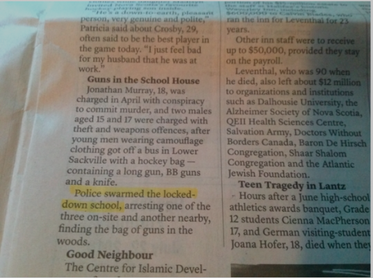在我出生之前,但我记得从档案中读到一篇标点符号完美、来源良好的文章,是关于哈利法克斯一个开枪自杀的警察局长的。哦,等等。这从来没有写过。发生过,可能有人写过,在登大报之前就被杀了。