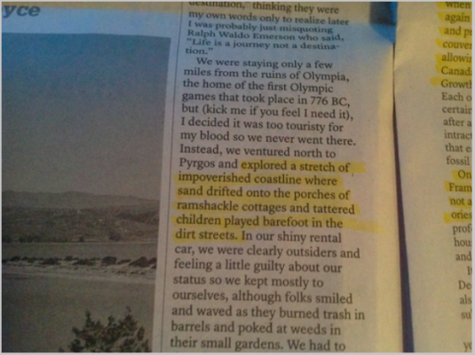 我甚至不知道该从何说起这个功能。首先,什么是“贫困的海岸线”?它缺少什么?沙子吗?水吗?和“破烂的孩子”?我的第一个画面是嬉闹的孩子们,他们的皮肤被剥掉,衣衫褴褛地挂在地上。称它为爱琴海上的广岛(太过了?)