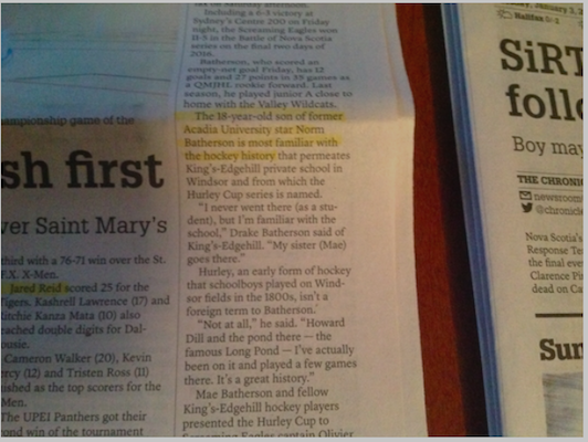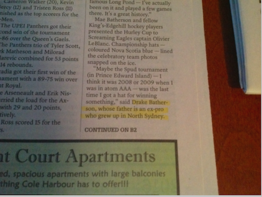 最可能的猜测是《纪事先驱报》的电脑自动更正了这个名字,改成了新斯科舍省第二大城市的名字。但是,严重吗?也许编辑从来没有听说过这个默默无闻的冰球爱好者,他在衰败的美国锈带城市辛勤工作?我觉得很有道理。