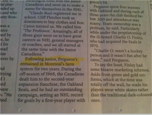 弗格森的什么保留在蒙特利尔农场系统中?他的曲棍球棒吗?婴儿的女儿吗?淋病的特殊菌株?