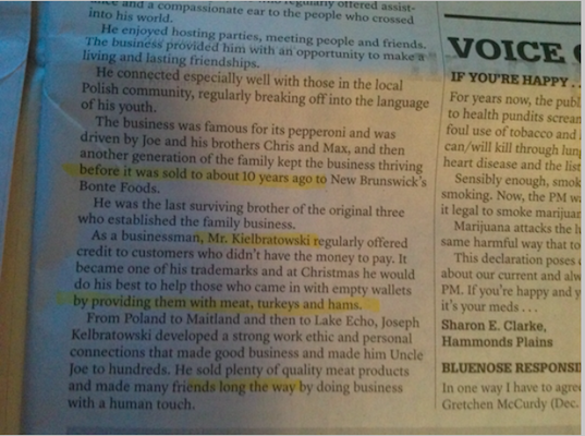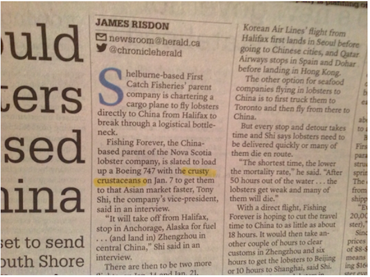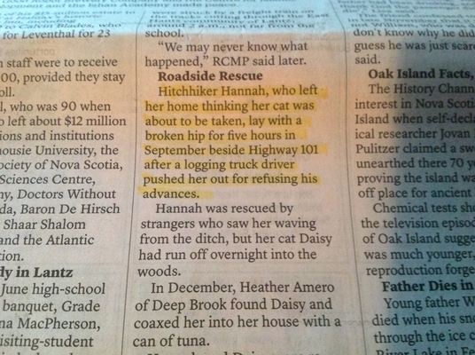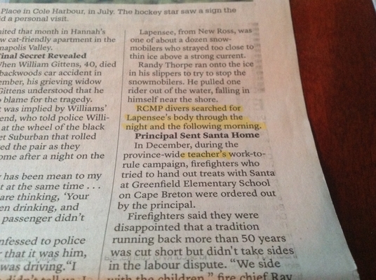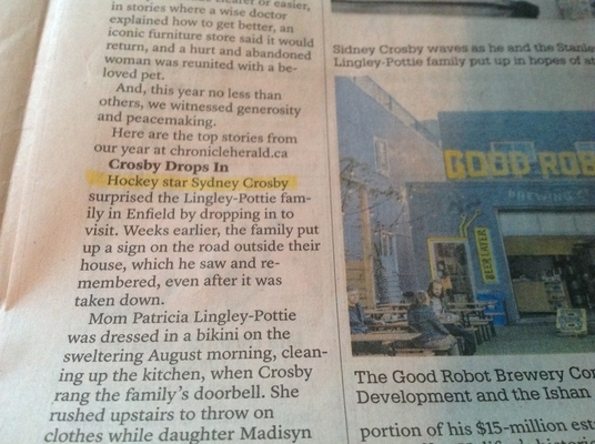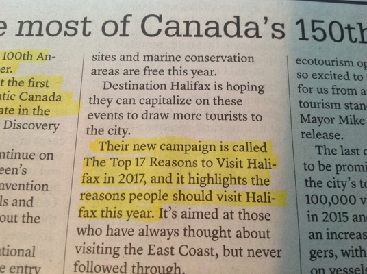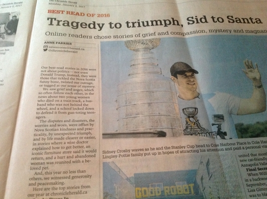 《纪事先驱报》在2017年的第一版中,用了整整一页的篇幅来报道这篇本质上是一篇小诗的文章。我不知道他们是怎么列出这个清单的。有在线投票吗?这些新闻的点击率最高吗?最多的读者评论?不知道。有趣的是,这些报道都没有涉及合法的有新闻价值的事件,如10月的市政选举,教师的劳资纠纷,或破坏新斯科舍省“报纸记录”的严重罢工。