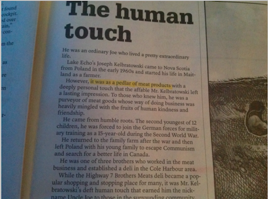 作为背景,在上一份工作中,我每周花了很大一部分时间在全国各地的小城镇报纸上搜索。我开始熟悉报纸的署名和节拍Lloydminster子午线助推器,迪格比快递,雄鹅灯塔.这些报纸通常是三到四个人操作:一名记者(需要提供自己的电脑、相机和汽车)、一名出版商和一名广告销售人员。如果幸运的话,他们可能会有一个接待员。