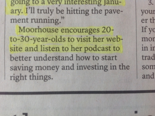 一篇有趣的简介,讲述了一位年轻的企业家向她的千禧一代同事教授财务管理的故事。他们给出了播客的名字“Mo’Money”,但没有给出她网站的URL。这很奇怪,因为他们在周二对纸卷公司的报道做了报道。也许这位年轻的商人并没有提出用报纸买一个广告包?