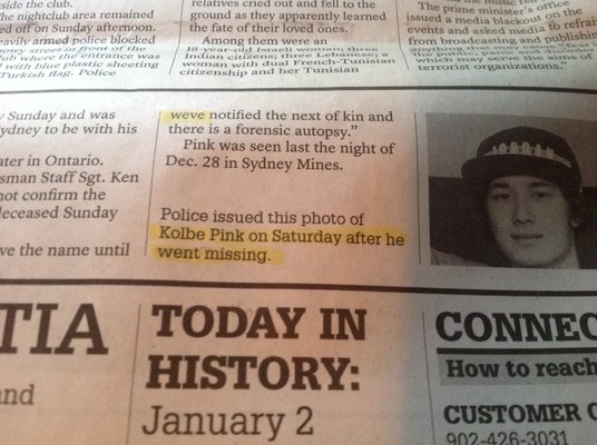 当悉尼矿业镇哀悼一名年轻人的死亡时,也许该省的“记录文件”能正确拼写他的名字?是“科比”,不是“科尔比”。