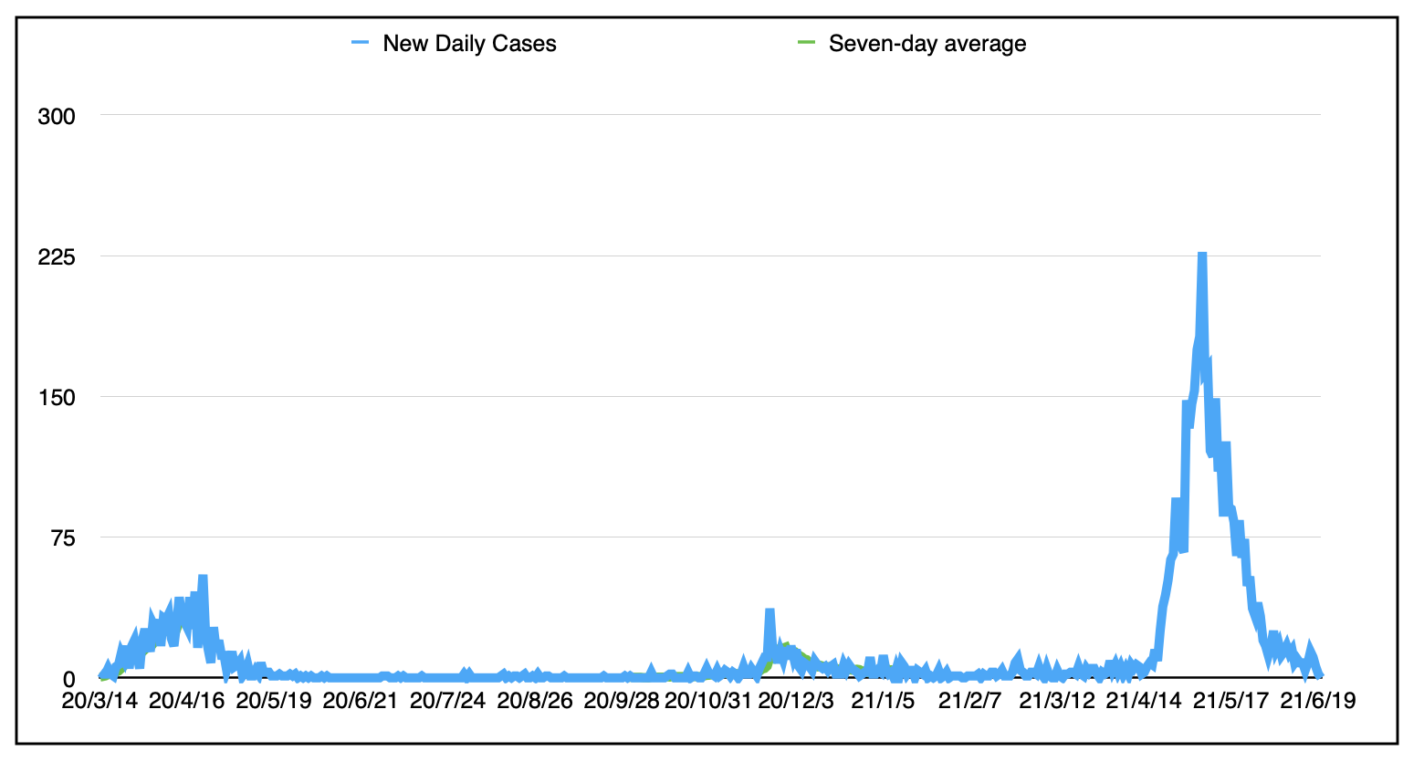 在他的每日Covid-19更新中,Tim Bousquet股票昨日报告了零新案件的精彩消息.事实上,海上没有任何新病例。