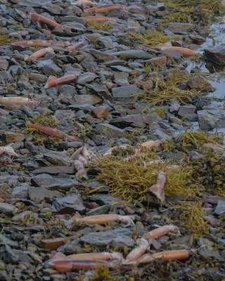 然而,不太常见的是,大量的死鱿鱼被冲到岸边。