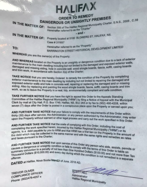 该通知命令该建筑的所有者“通过完成主要住宅的外部维护来补救该房产的状况,包括但不限于修复受损和暴露的外墙和混凝土墙上的洞,修复或更换受损和或[原文如此]缺失的壁板。此外,还可以更换和粉刷木瓦板、筋板、拱腹、套管板和装饰工作,从而使物业保持整洁、环保和安全的状态。”