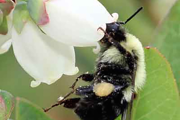 好了,关于野生蓝莓的故事有几件事要做。不是批评,请理解,只是观察,因为这是我的一部分。这张照片展示了一种野生蜜蜂,在这个例子中,是某种种类的大黄蜂。从一块田地到另一块田地为野生蓝莓(和其他作物)授粉的蜜蜂是外来物种,不是本地物种,看起来也不像我们毛茸茸的大黄蜂。