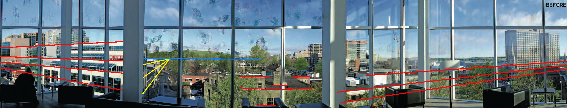 当当地的一个市民团体“把它建低一点”(Build It Lower)让公众意识到,图书馆的景观正面临危险时,韦斯特伍德试图通过制作自己的蒙太奇(在韦斯特伍德的幻灯片中)。不幸的是,它没有正确构造。当我通过添加颜色编码叠加层来分析其透视几何形状时,我发现Westwood的蒙太奇的作者非常了解透视。背景层和构建层在其位置或其几何形状中不配位。这是一个致命的缺陷。因此,韦斯特伍德的蒙太奇不是对回答有关Doyle块的影响的严重问题,这不是一个可靠的参考,这些问题在Citadel Hill图书馆的图书馆看来。这也不是批评我生产的透视蒙太奇的可靠依据。