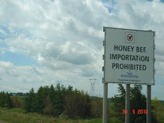 尽管蜜蜂有阅读能力,但我相信,这个标志最初是放在边境的,以防止人们不知不觉地进口瓦螨,影响两种蜜蜂。