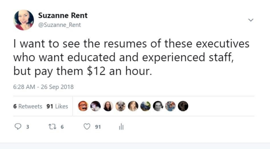 我开始啁啾我发现了什么。现在,啁啾的要求穷人的工资和较长的列表并没有真正工作猎人诱人的前景给雇主。但我开始从其他工人谁是同样沮丧,注意到了同样的趋势信息。他们被卡在低薪工作没有空间发展,有时工作第二份工作或者“侧喧嚣”只是为了支付账单。其中一些消息是我认识的人。其他人则来自Twitter上的陌生人。这些故事往往是相同的:挫折缺少机会,在招聘信息,其中包括一定程度的上市要求的长长的名单,而且,当然,工资低。他们经常给我发了招聘职位与要求和低工资长的列表。人们告诉我,他们被烧毁了,不知道接下来要去哪里。他们都是年轻人,几年失学和X一代和我一样的。 We were all in the same very leaky employment boat in Canada’s Ocean Playground.